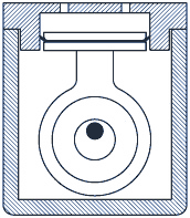刚性固定于连杆的活塞在气缸内做上下往复运动时,会产生摆动现象。因此,相较于线性驱动式泵,该结构中的活塞环承受的应力更大。但连杆(从偏心轴到活塞)的长度经过优化设计,可最大限度减小活塞的摆动幅度。